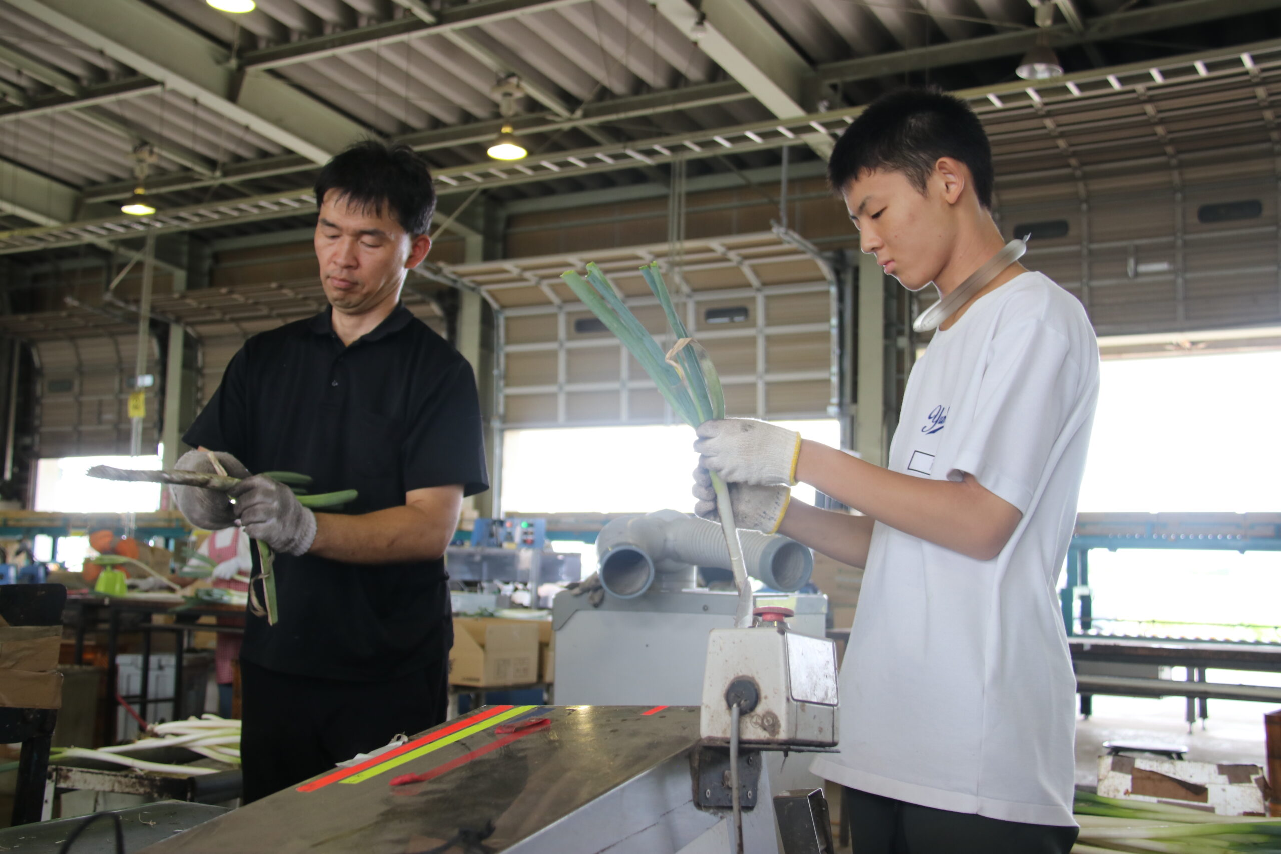 【中学生が白ネギ選果作業など体験。仕事の大切さなど学ぶ】