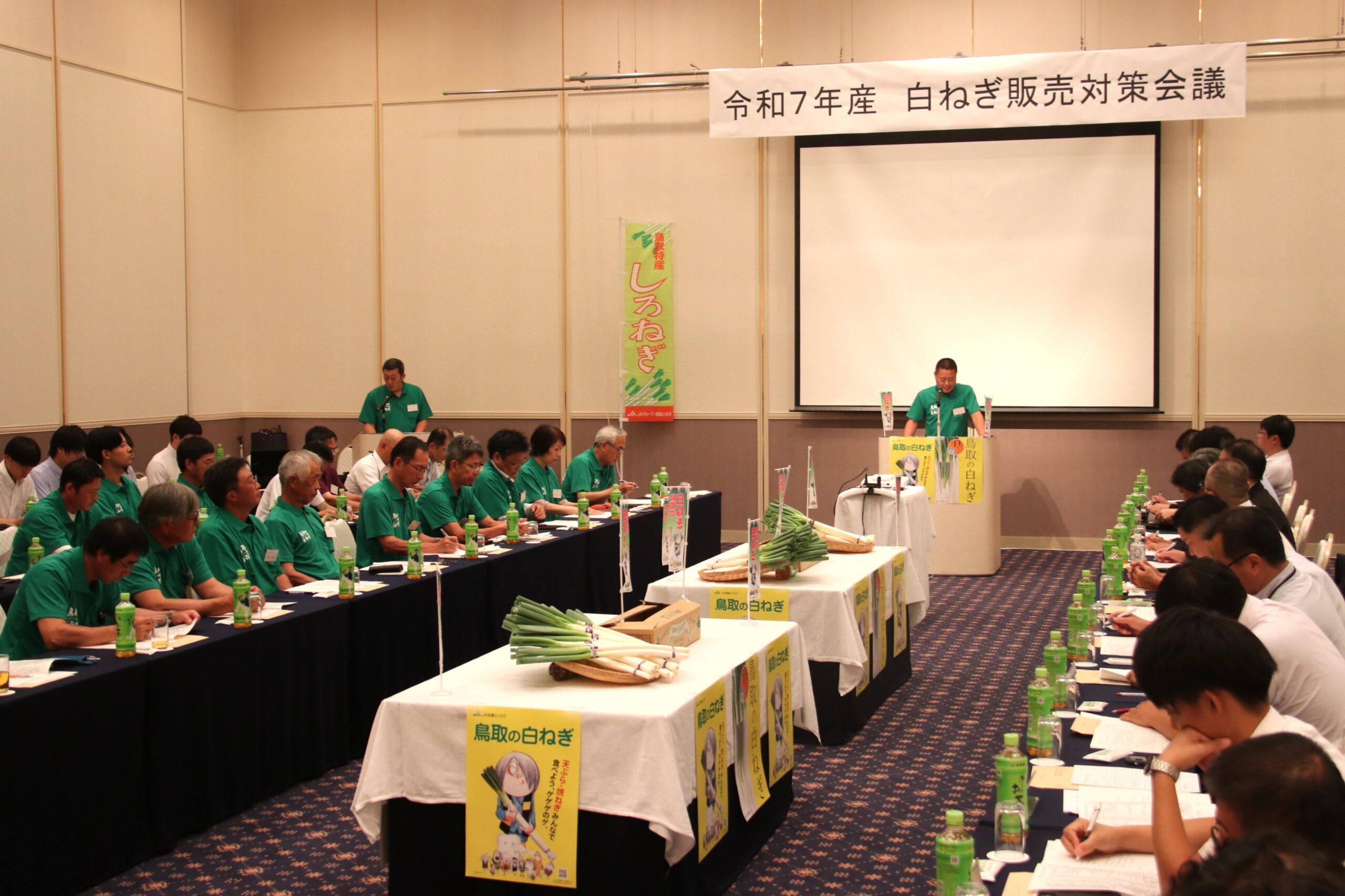 JA全農とっとりなど県内各JAは9月5日、2025年産白ねぎ販売対策会議を開きました。10月から始まる25年産秋冬ネギの出荷販売について協議し、販売金額15億6000万円を目指すことなどを決めました。意見交換では、生産者やJA、市場の代表者らが意見や要望などを出し合いました。