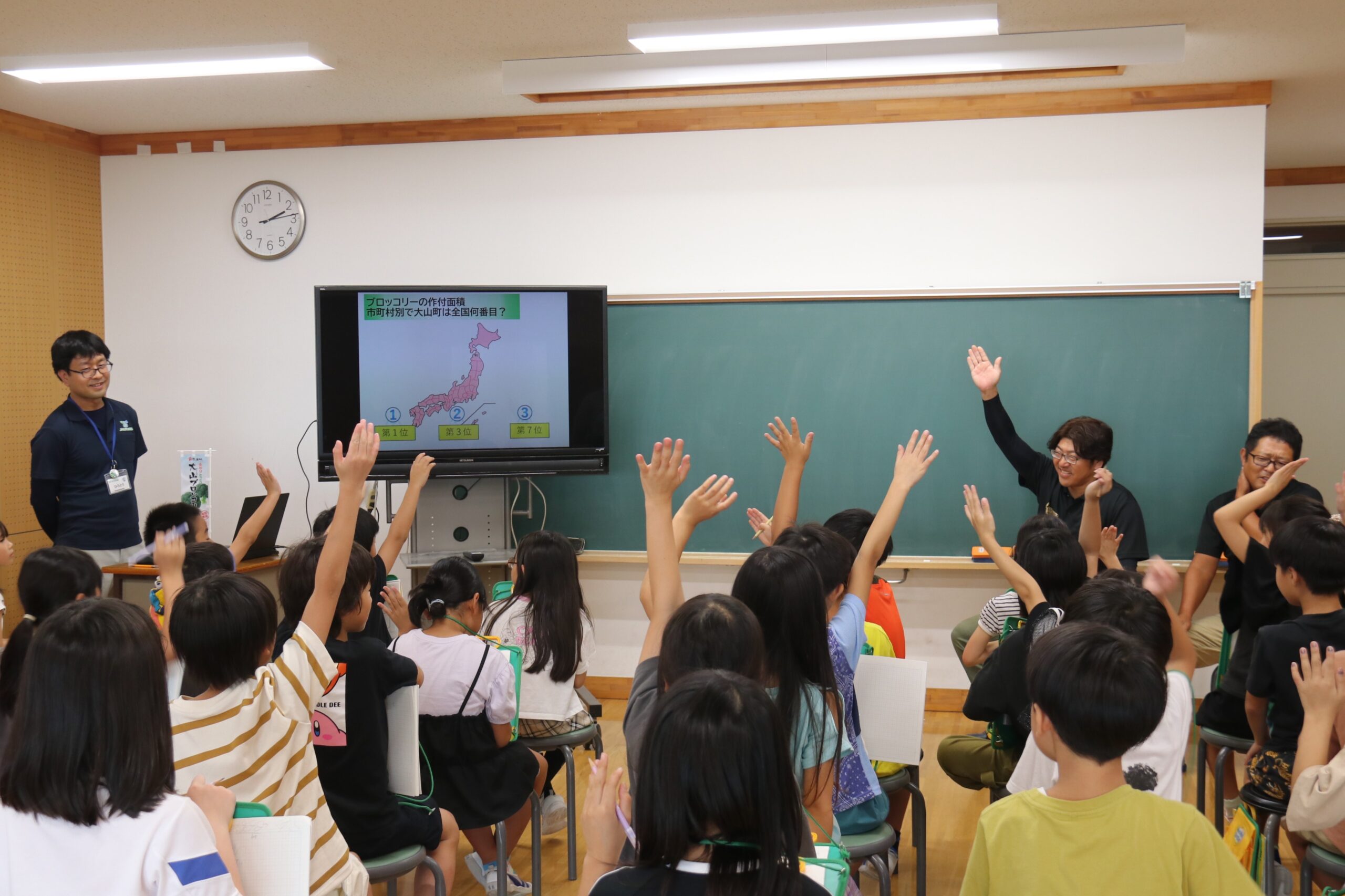 JA鳥取西部青壮年部名和支部は9月4日、名和小学校で地元特産の「大山ブロッコリー」を題材にした食育授業を行いました。ブロッコリーが食卓に届くまでの流れや、おいしく食べる方法などをクイズ形式で出題し、児童らは楽しみながら地元の特産ブロッコリーへの理解を深めていました。