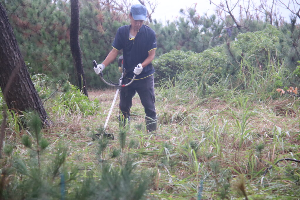 JA鳥取西部は白砂青松ボランティア活動の一環として9月18日、国道431号線沿い約40アールの松林の草刈りや清掃活動などを行いました。松林内に生い茂った雑草を刈り払い機で刈り取り、落ちているごみや折れた枝などを拾い集め、松林の環境整備に取り組みました。