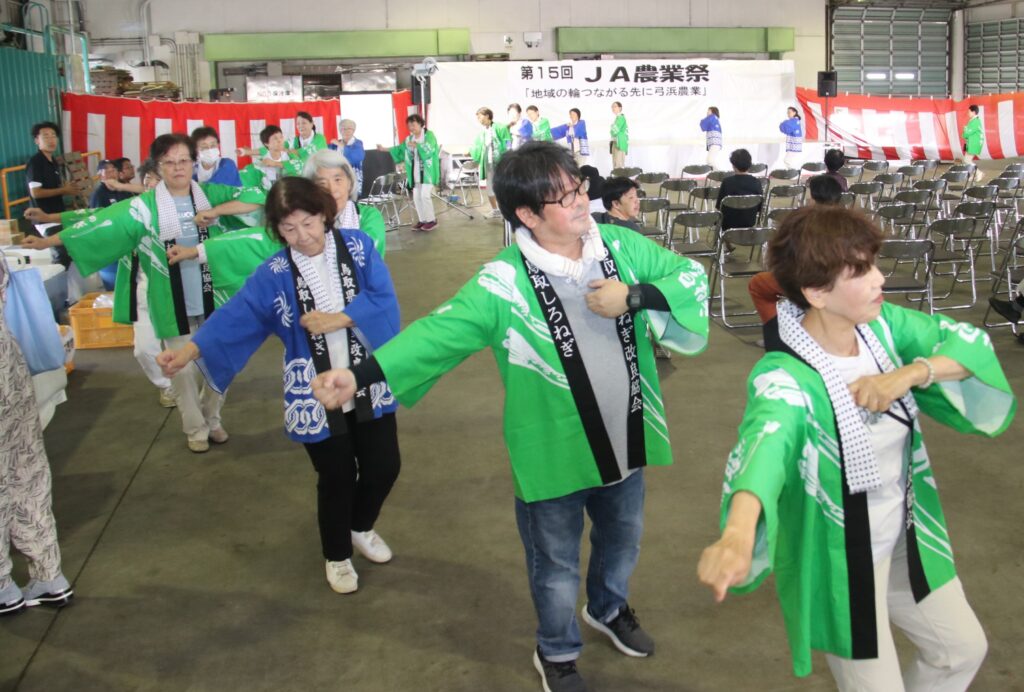 JA鳥取西部米子弓浜支所は9月27日、JA弓浜予冷センターで第15回JA農業祭を開きました。来場者とのふれあい交流で地域の絆を深めました。ステージイベントでは、地域住民や地元中学生らによる踊りや銭太鼓、大正琴や吹奏楽の演奏などが披露され、JA万灯会による万灯演技なども会場を盛り上げていました。