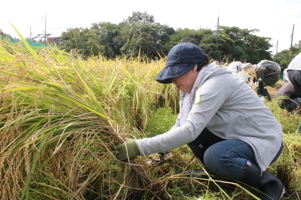 第13期なるなる女性大学 第5回カリキュラム「なるなる女性大学の受講生、稲刈りで農業体験」