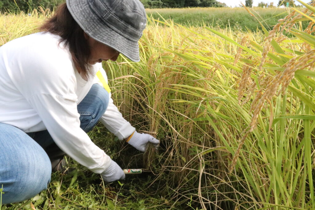 JA鳥取西部なるなる女性大学の受講生は9月28日、伯耆町丸山の「ふれあい交流田」で開催された「米フェスタ2025 親子稲刈りウォッチング」に参加し、稲刈りを体験しました。
