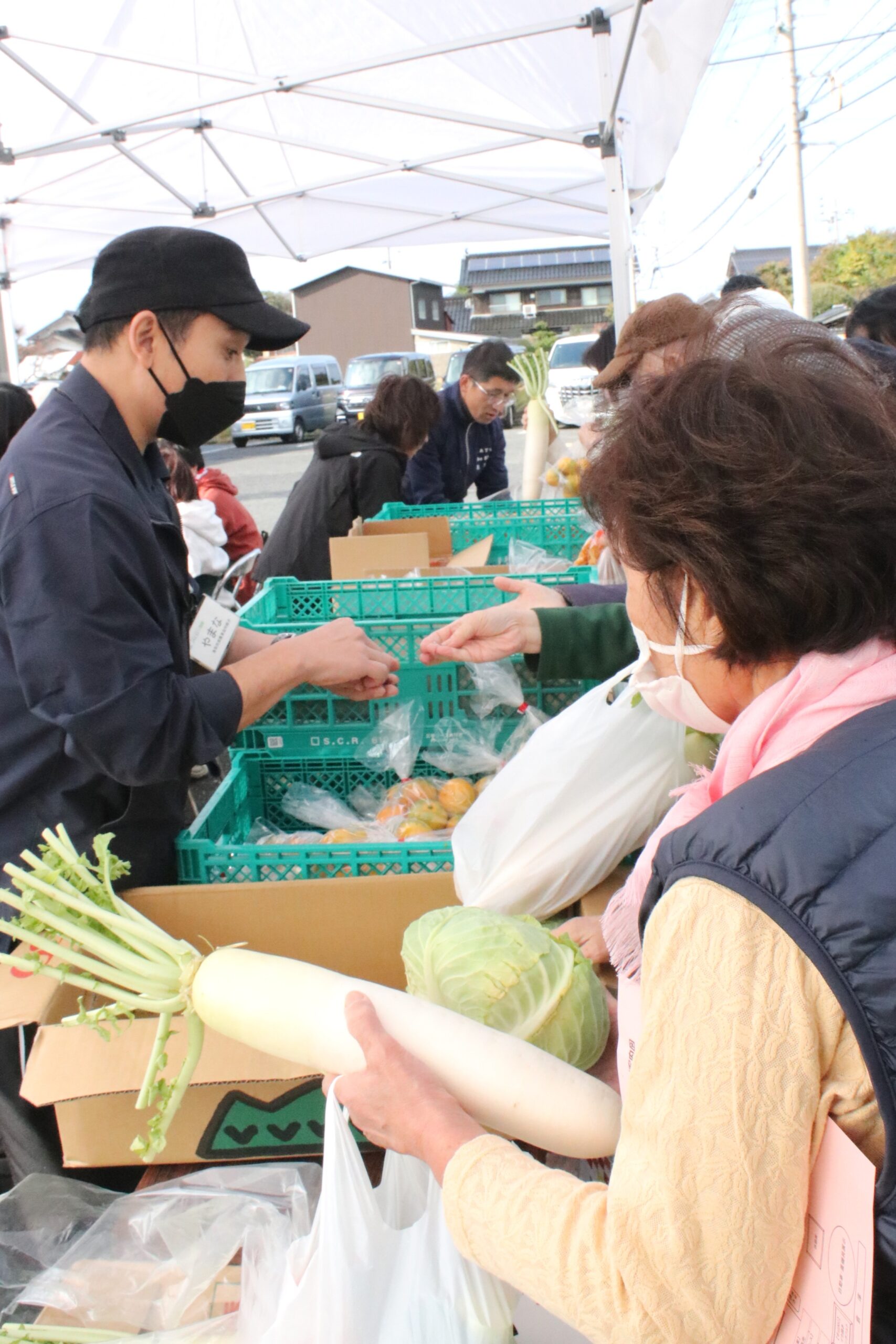 【支所が地元イベントで交流深める。地元農産物や加工品など人気】