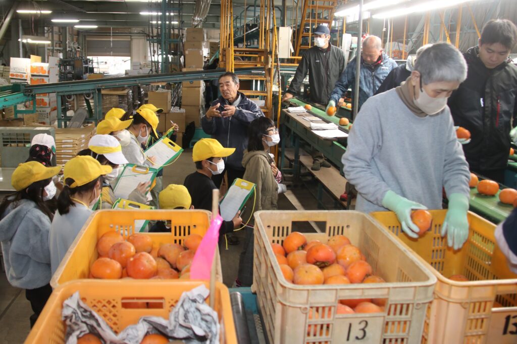 【小学生が柿選果場を見学。出荷の流れや施設の役割など学ぶ】