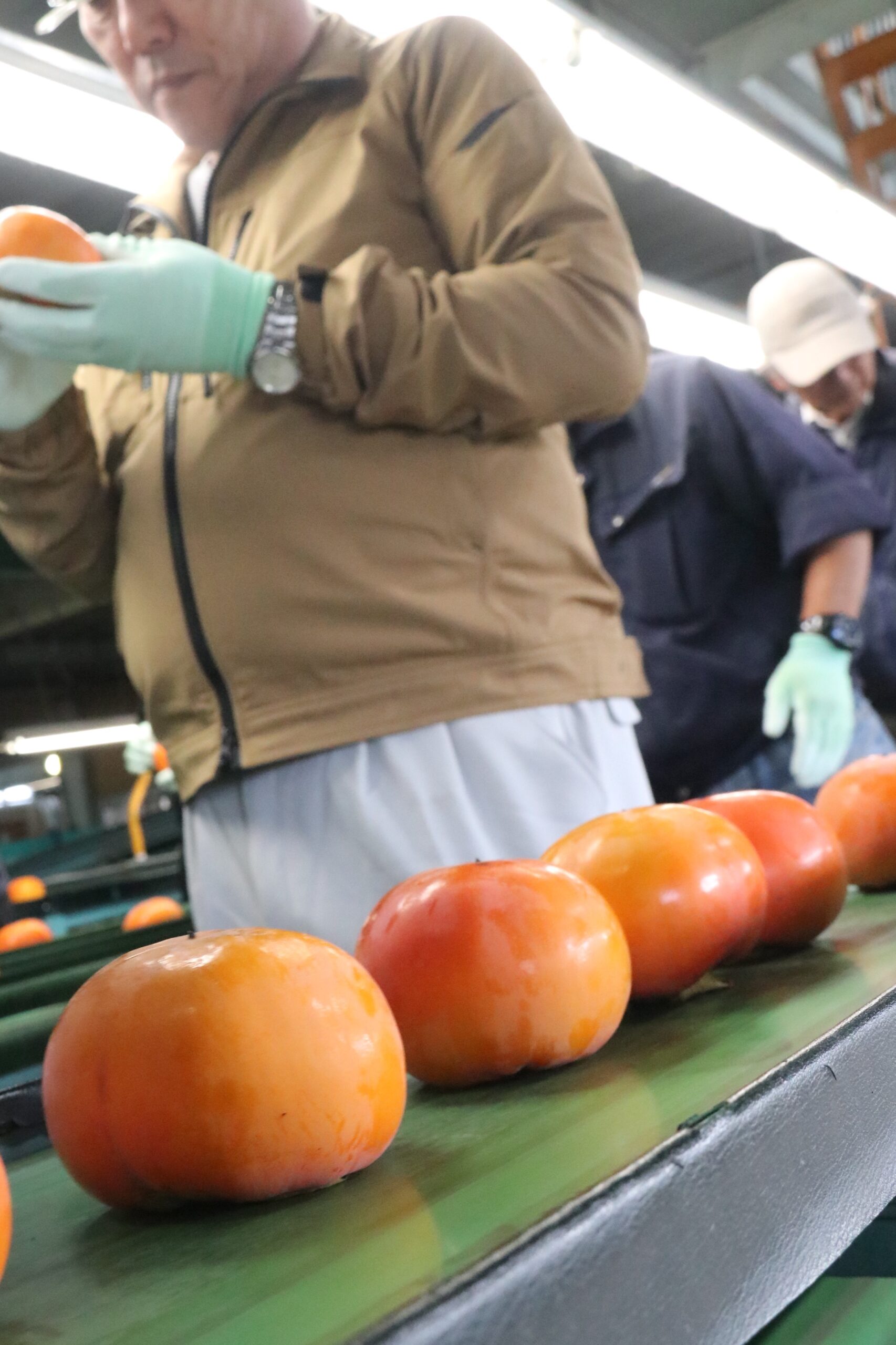 JA鳥取西部米子・あいみ果実部は11月6日、あいみ果実選果場で柿「富有」の初選果を行いました。選果式を行い、出荷基準を確認した後、選果と箱詰め作業に取り組み、地元や京阪神、山陽地域へ出荷しました。柿「富有」は、11月末ごろにピークを迎え、12月上旬まで選果を計画しています。