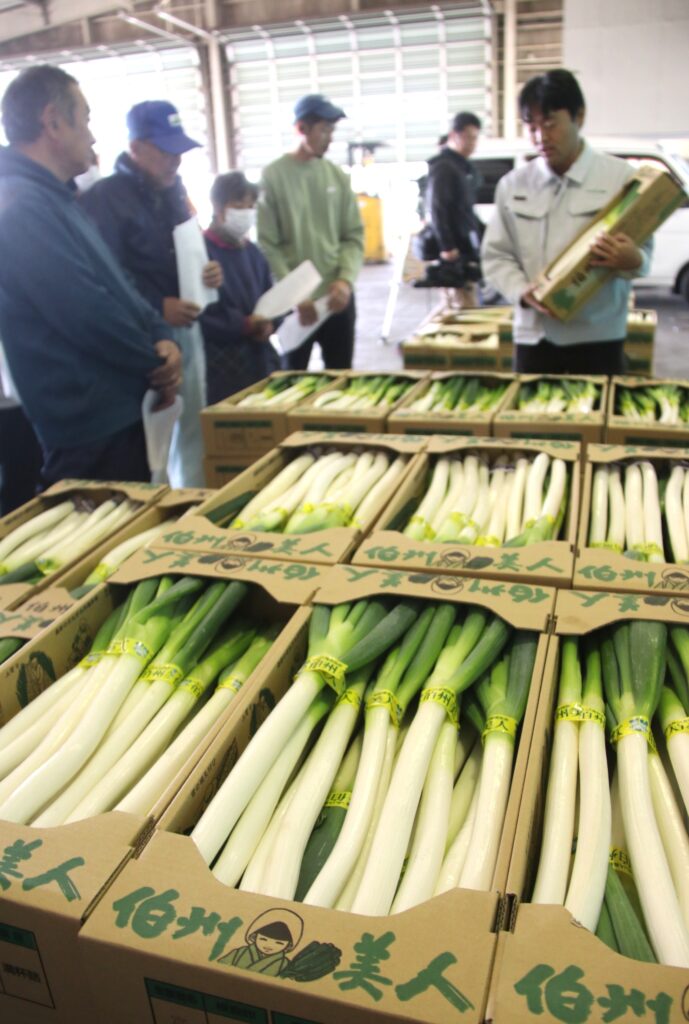JA鳥取西部管内で2025年産白ネギ「伯州美人」がスタートしました。JA弓浜青果物集出荷予冷センターでは、前年より6日早い11月20日から25年産「伯州美人」の集荷を始め、目合わせ会を行い、「伯州美人」の出荷基準などを確認や高品質な出荷を行うことなどを申し合わせました。