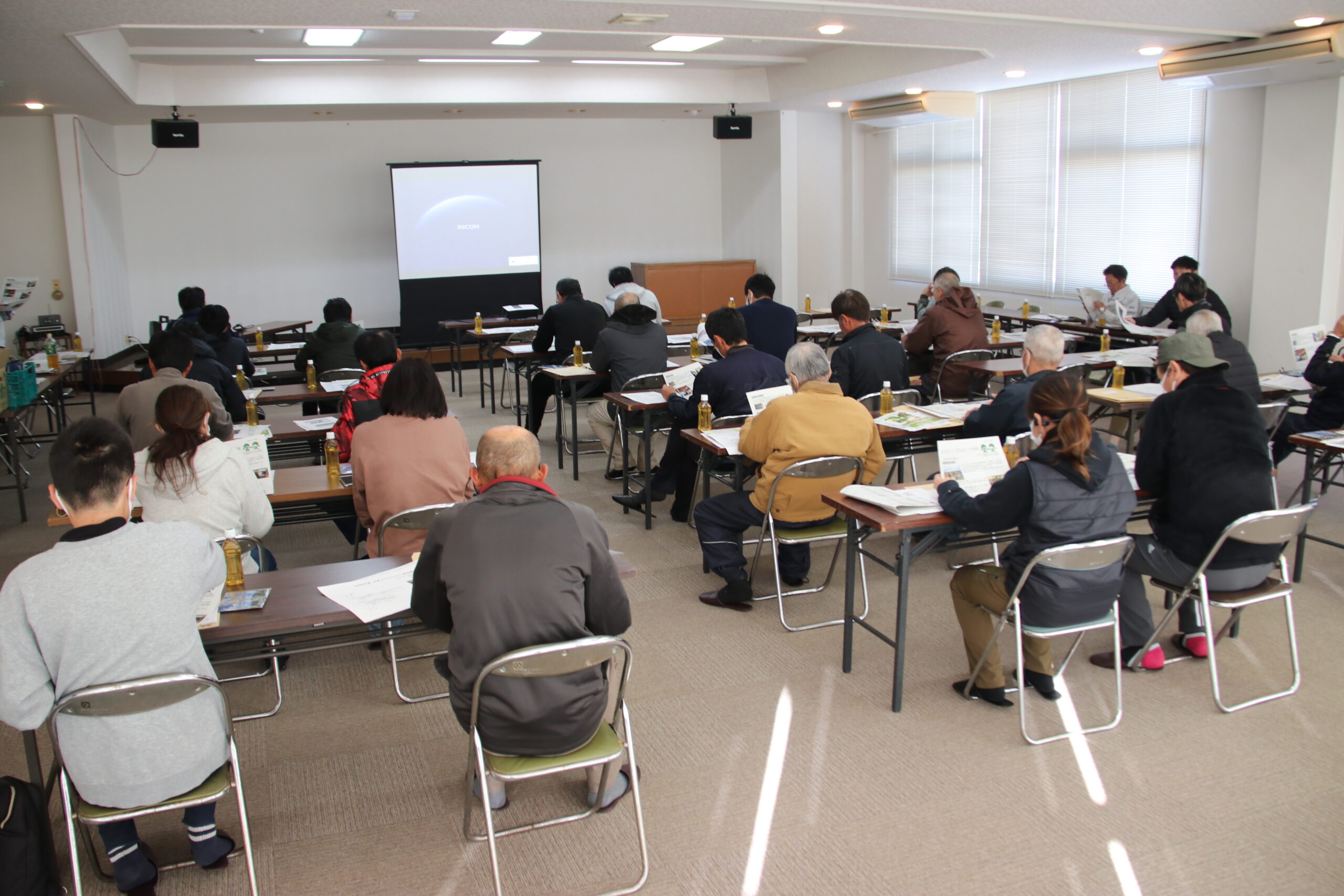 JA鳥取西部は、管内各地で2026年産初夏どりブロッコリー栽培講習会を開きました。11月27日、JA中山支所で開いた講習会では、ブロッコリー試験品種や農薬試験などの結果を報告し、26年産初夏どりの栽培管理について説明を行いました。また病害虫予防の徹底や、育苗期のボトニング(早期花蕾)や茎内部に空洞ができるホローステムへの対策などを呼び掛け、作業中の身体への負担を軽減するための足元マットや手首サポーターなども現物を持ち込んで紹介しました。