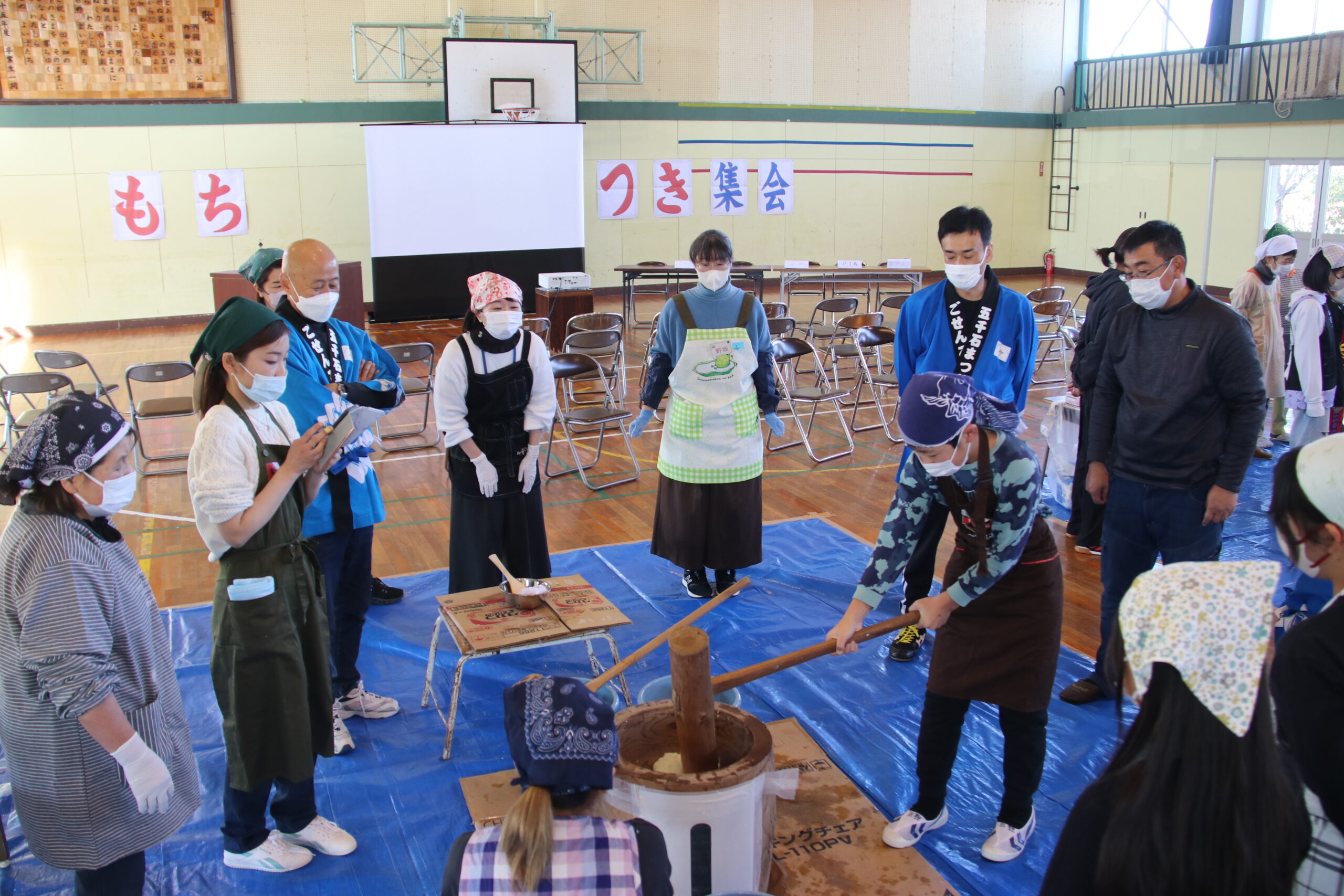 五千石小学校は11月29日、同校体育館でもちつき集会を開きました。JA青壮年部五千石支部員らが参加し、もちつきを通じて児童や地域と交流を深めました。使ったもち米は同支部員らの協力のもと、児童が田植えや稲刈りなどを行って10月に収穫したものです。