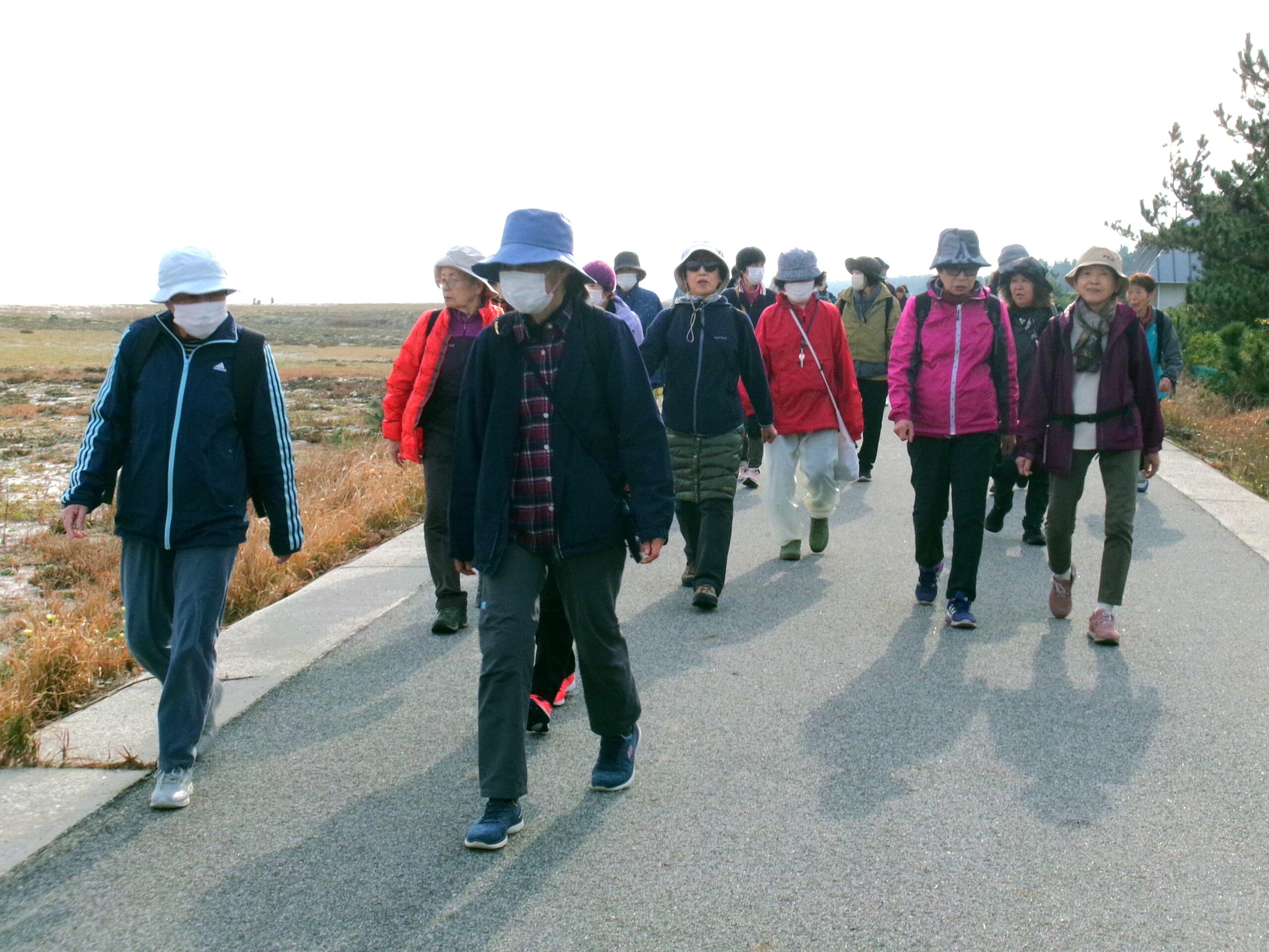 JA鳥取西部女性会米子弓浜支部は11月27日、恒例のウォーキング大会を開催しました。お試し会員も参加し、中浜展望駐車場から夢みなと公園まで片道2キロの距離を歩きました。目的地の夢みなと公園では休憩し、おにぎりとお茶を味わいながら、楽しい雰囲気に包まれていました。