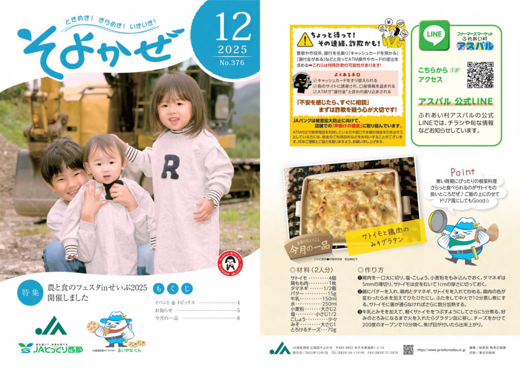 広報そよかぜ12月号を発刊しました♪今回の特集は「農と食のフェスタinせいぶ2025を開催しました」です。