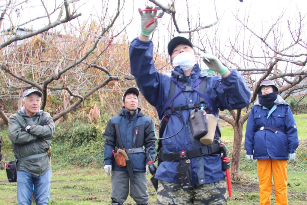 西部地区柿指導者協議会は12月15日、米子市と南部町で柿の剪定講習会を行いました。高品質な柿の安定生産を目指し、剪定作業の知識や技術の向上などを図りました。参加者らは熱心に質問や意見交換などを行い、剪定作業への理解を深めていました。