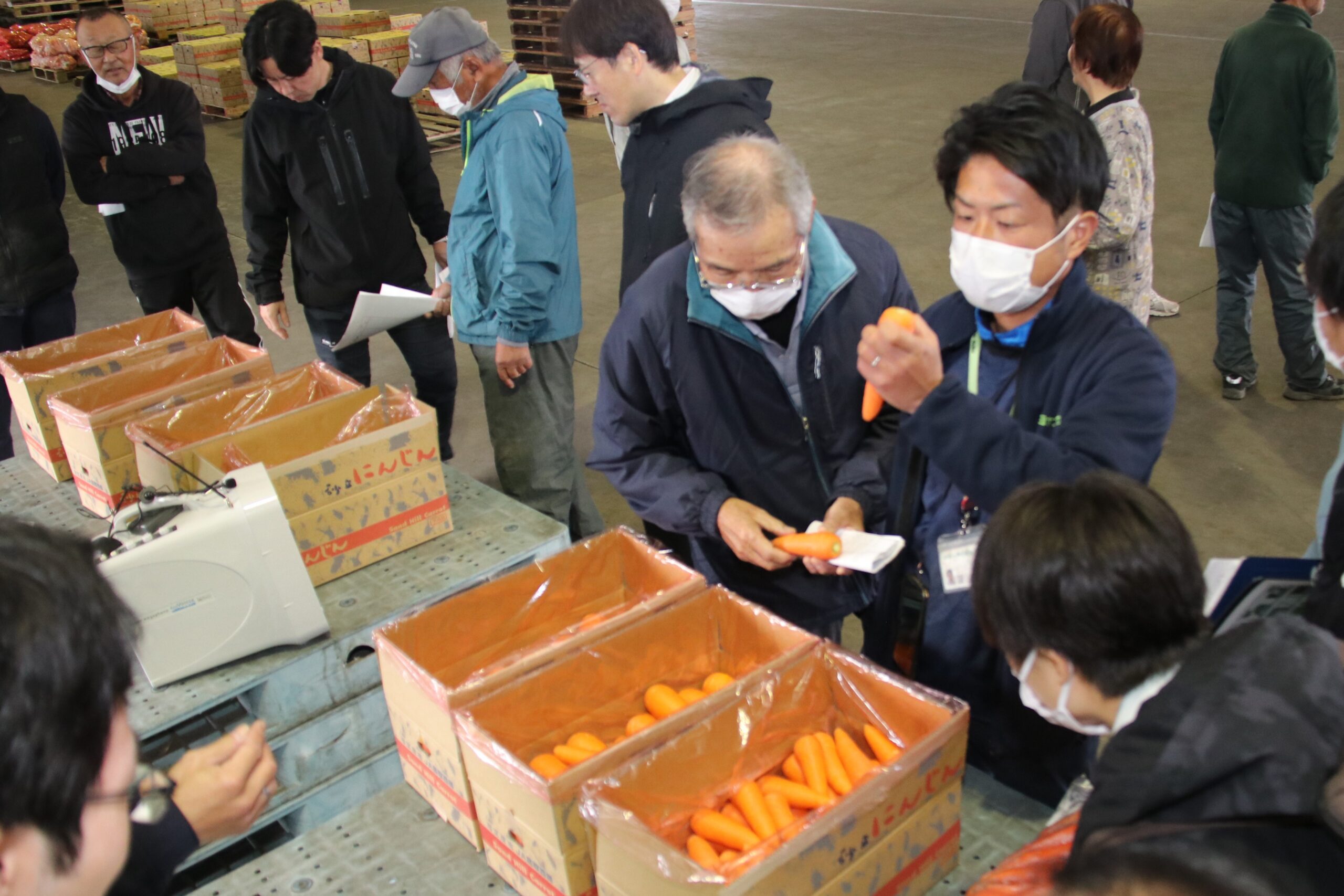 JA鳥取西部は12月8日、JA弓浜青果物集出荷予冷センターで秋冬ニンジン個選出荷の目合わせ会を開きました。目合わせで出荷基準などを確認し、高品質出荷に取り組むことなどを申し合わせました。