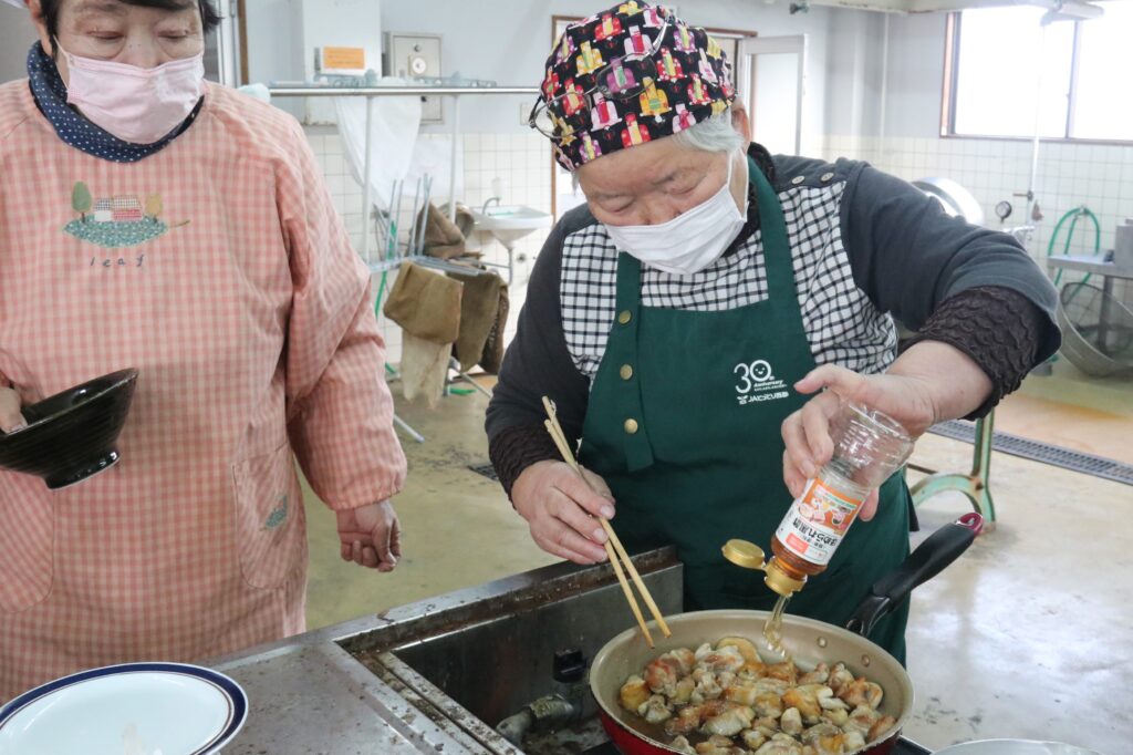 JA鳥取西部女性会中山支部は12月2日、農村婦人の家加工室でエーコープマーク品を活用した料理講習会を開きました。炊き込みご飯や鶏の黒酢照り焼きのほか、地元産ブロッコリーを使った副菜やみそ汁など、家庭で手軽にできる5品の料理づくりに挑戦しました。