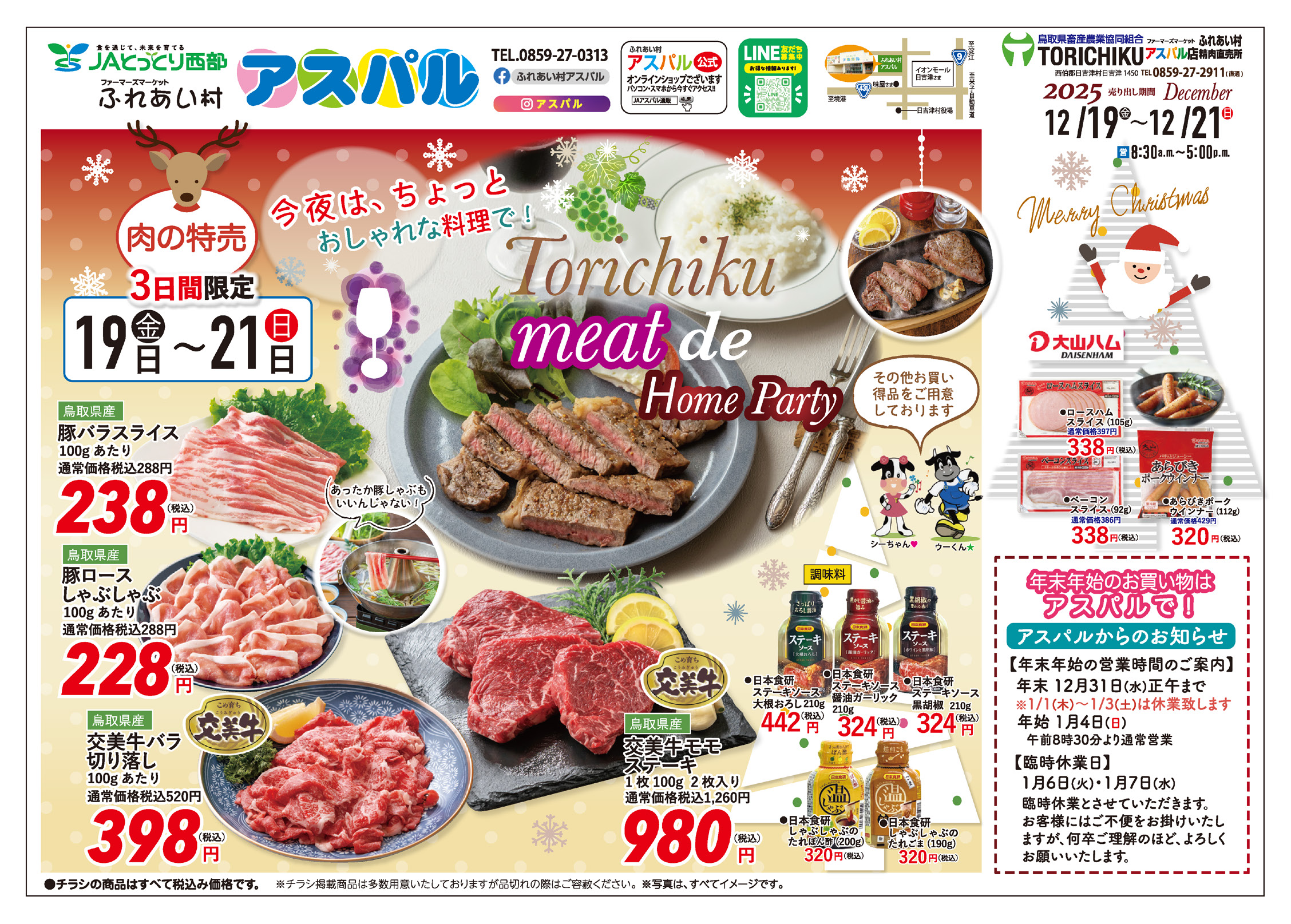 #アスパル #JA鳥取西部 #交美牛 #お肉の特売 #クリスマスごはん #ホームパーティー #ふれあい村