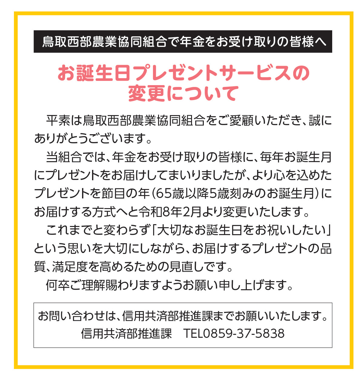 (鳥取西部農業協同組合で年金をお受け取りの皆様へ)