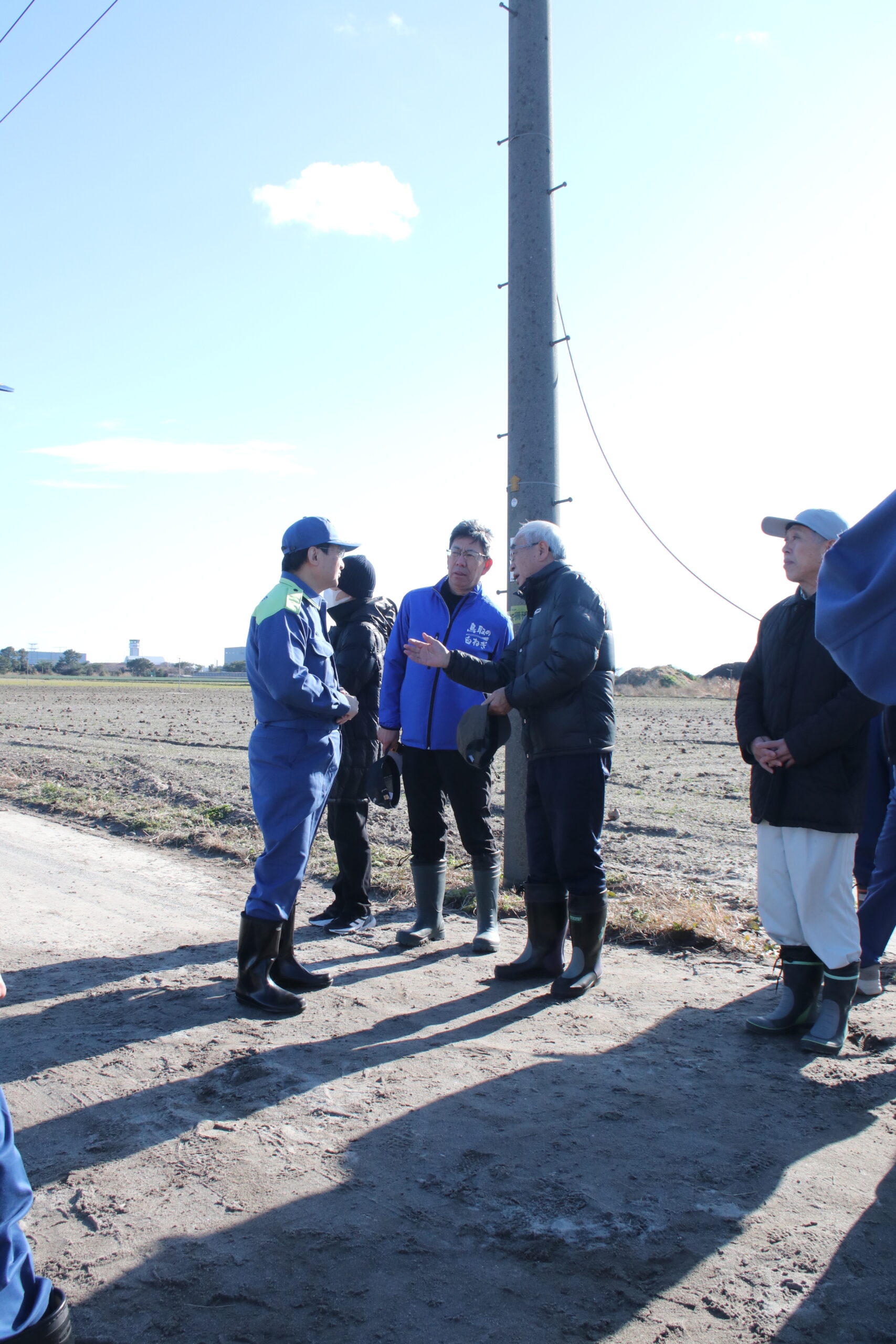 1月6日午前10時18分頃に発生した、島根県東部を震源とする地震を受け、鳥取県知事が1月10日、農業被害状況を把握するため、境港市の中海干拓地を訪れ、現地視察を行いました。視察には、JA鳥取西部の組合長や専務、地元関係者らが立ち会い、被害状況や今後の見通しなどについて報告しました。中海干拓地内でおよそ20枚の畑に液状化被害が確認されていることに加え、農道では亀裂や段差が生じている箇所があるとの説明し、被害の早期復旧を進める方針です。