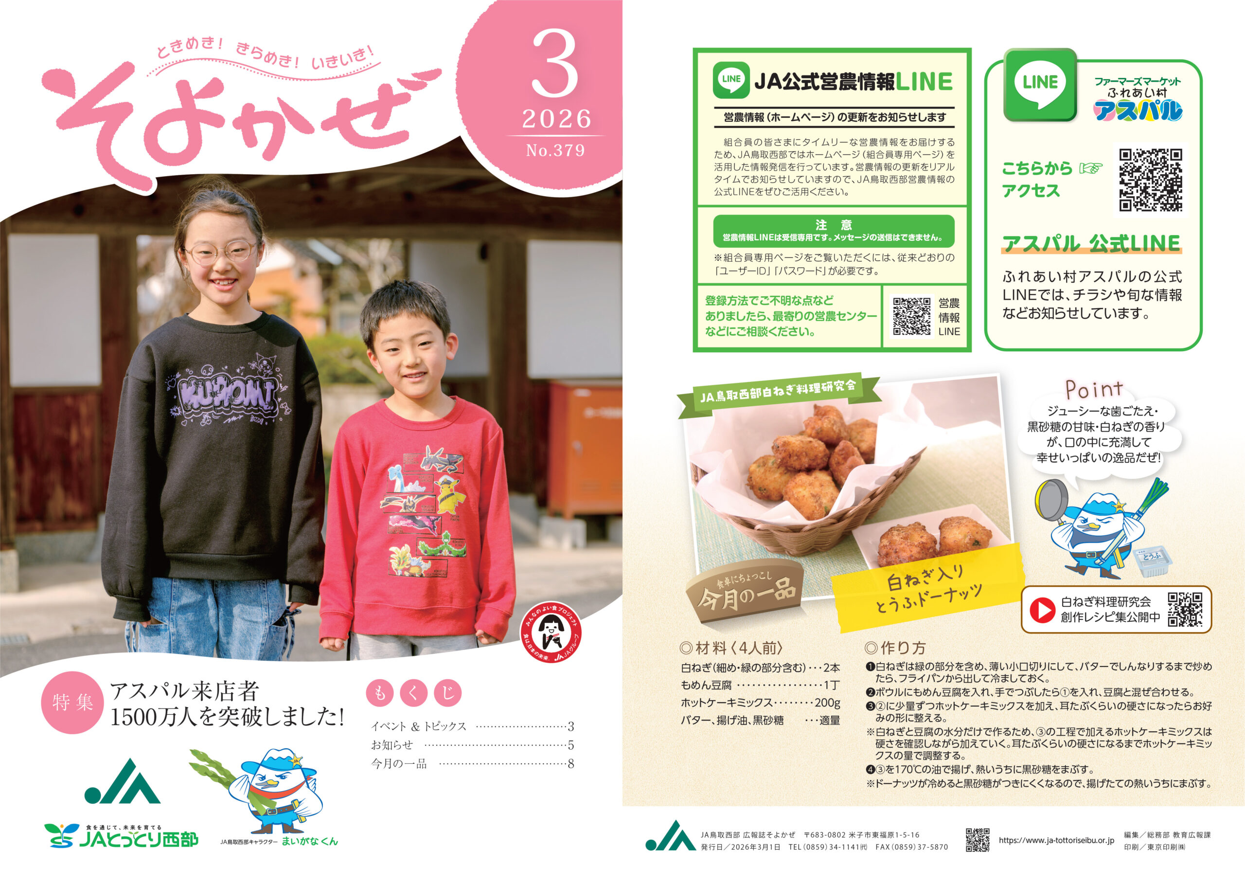 広報そよかぜ3月号を発刊しました♪今回の特集は「アスパル来店者1500万人を突破しました」です。