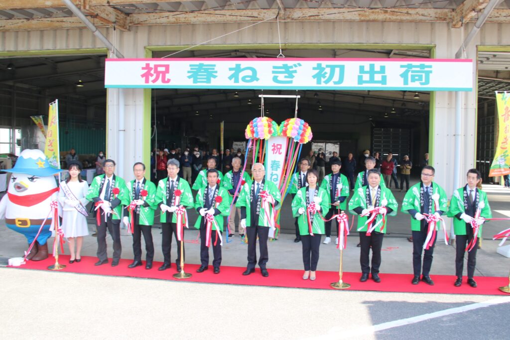 JA鳥取西部は3月1日、JA弓浜青果物集出荷予冷センターで県内の春野菜の先陣を切る「春ネギ」の出発式を開きました。出発式に先立ち、目合わせ会で出荷規格などを確認し、JA白ねぎ料理研究会による「白ネギのミルクスープ」のふるまいも行いました。出発式では、テープカットやくす玉割り、万歳三唱などで初出荷を祝い、春ネギを載せて京阪神市場に出発するトラックを参加者らは笑顔で見送りました。
