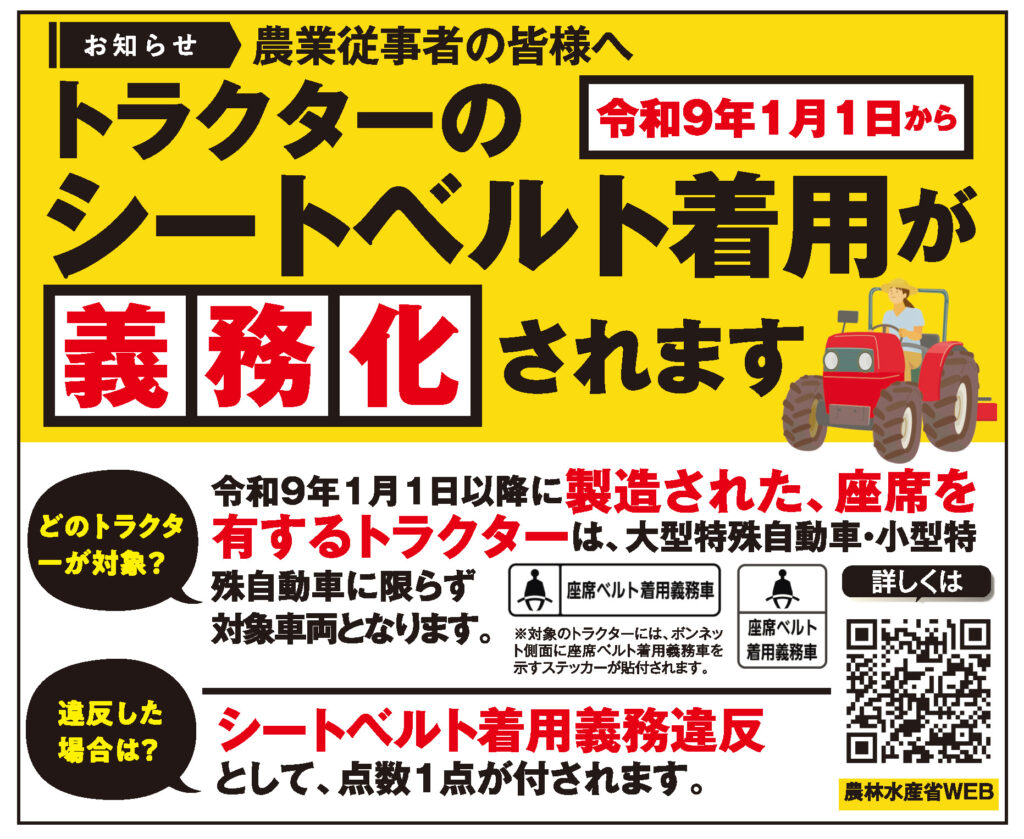 春の農繁期を迎える前に、農機の点検と安全対策をしっかり行いましょう!