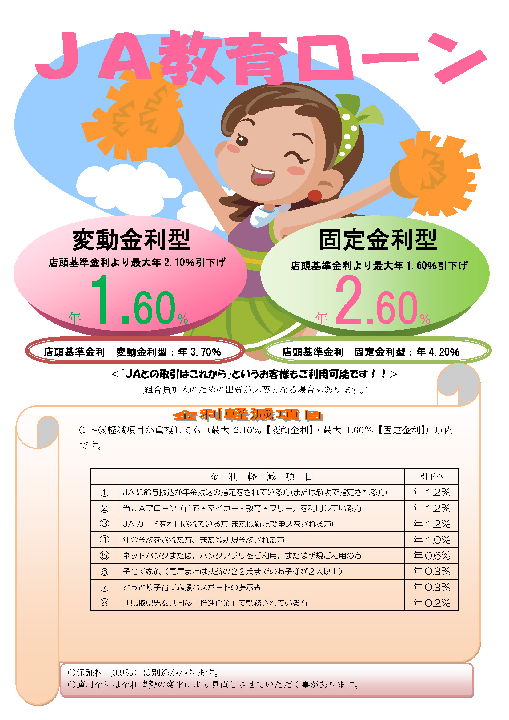 JAの教育ローンは安心の低金利。お子さまの学校に納付する入学金、授業料等の学校教育費、アパート家賃等の住居費等にご利用いただけます。
