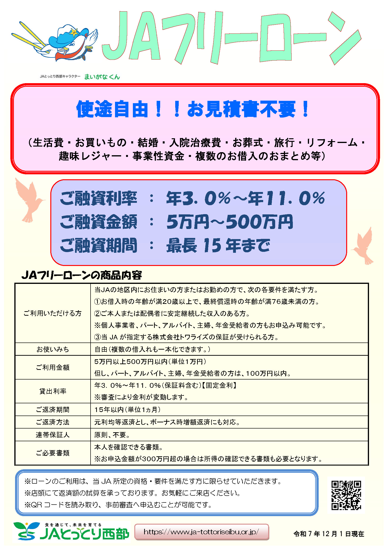 JAフリーローンは使途自由!お見積り不要(生活費・お買いもの・結婚・入院治療費・お葬式・旅行・リフォーム・趣味・事業性資金・複数のおまとめ等)で、ご利用いただけます。